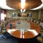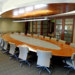 (26′ x 10′) Custom Maplewood / Granite Oval boardroom Table – Unbelievable craftsmanship went into every detail of this gorgeous Showroom piece. (10) Voice/Data Ports concealed in the pop-up Maplewood access doors, (4) Rectangular Bases, inlay granite center. Original Invoice shows $ 75,000 + ….. if you need this sizable Boardroom Table it’s a steal at $ 12,500 ….. could make a huge statement at Home or in the Glass High Rise !!!.