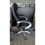 Elegantly upholstered with Black LeatherPlus. Padded armrests. Upright locking position. Pneumatic gas lift seat height adjustment. Adjustable tilt tension control. LeatherPlus is leather and polyurethane for added softness and durability.