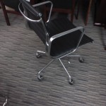 Eames Executive Work Chairs—known also as Time-Life chairs—were created, along with the Eames walnut stools, for the three ultramodern lobbies of the Time-Life Building in 1960. The executive work chair features a lightweight aluminum frame and base and finely detailed leather or fabric upholstery accented with covered buttons and edge details typical of traditional fine furniture.