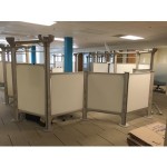 Herman Miller Resolve Stations – This post and beam system uses screens instead of hard wall partitions to define space with in an office. This is a very modern system that creates and open and futuristic feel within the office.