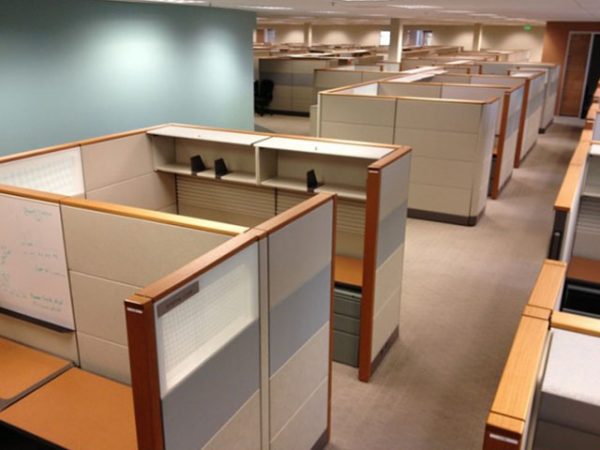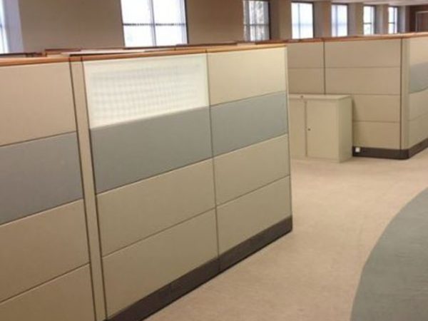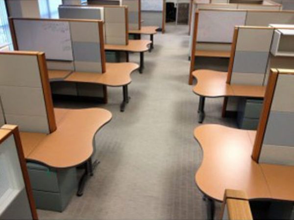Herman Miller Ethospace Cubicles (70″H) – These are fully loaded cubicles with Overhead bins/task lights,(1) BBF pedestal, (1) FF pedestal, rail tiles with paper flow trays, whiteboard tile, Adjustable curvilinear corner work-surfaces, Glass accent tiles for open airy feel to these stations!