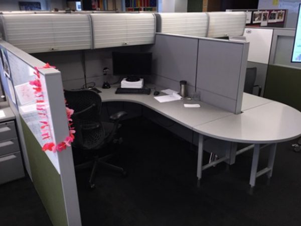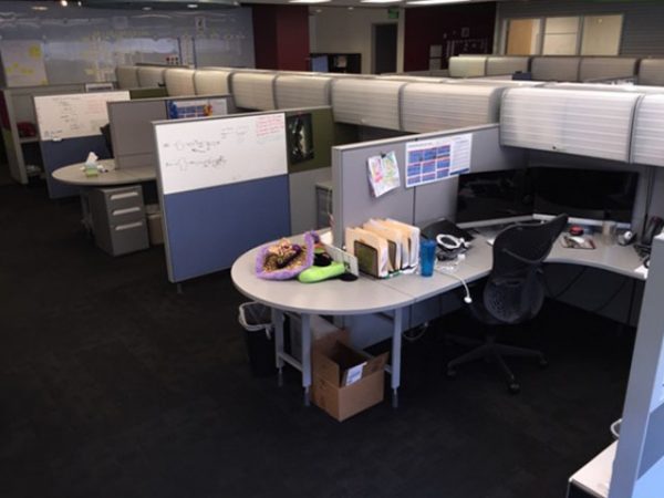 Herman Miller Vivo stations (6 x 7). These contemporary cubicles add a cool sophistication & ambiance to any office space. If you need a little more privacy than what benching affords, these are a perfect fit for your project. These work stations come with translucent roll-top overhead bins (removable), task lights, and (1) BBF storage pedestal. these are in immaculate condition and priced right.
