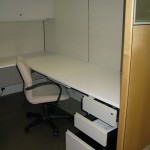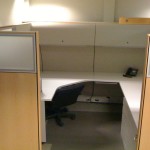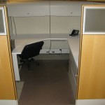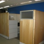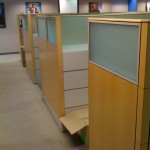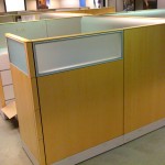 (8) Maplewood Knoll ‘Reff’ (8 x 8) Managers Stations – These are high-end Maplewood Veneer Stations with double wing privacy and frosted glass accent windows. The components include (2) Overhead Bins with task lights, (1) Box/Box/File 3-drawer Pedestal, (1) 4-Drawer 36″W Lateral File. Corner U-shape worksurfaces. These originally sold for over $ 4000 each. SALES PRICE: $ 745 each station when sold in cluster laout design ..